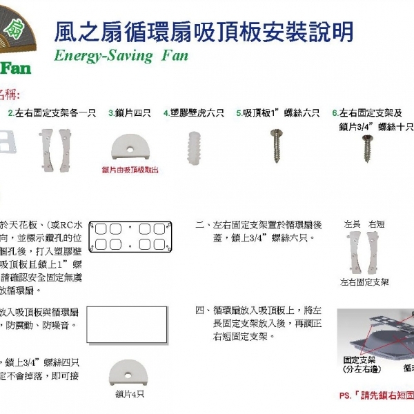吸頂式節能循環扇適用於無輕鋼架之水泥天花板,採用高強度ABS塑材固定支架